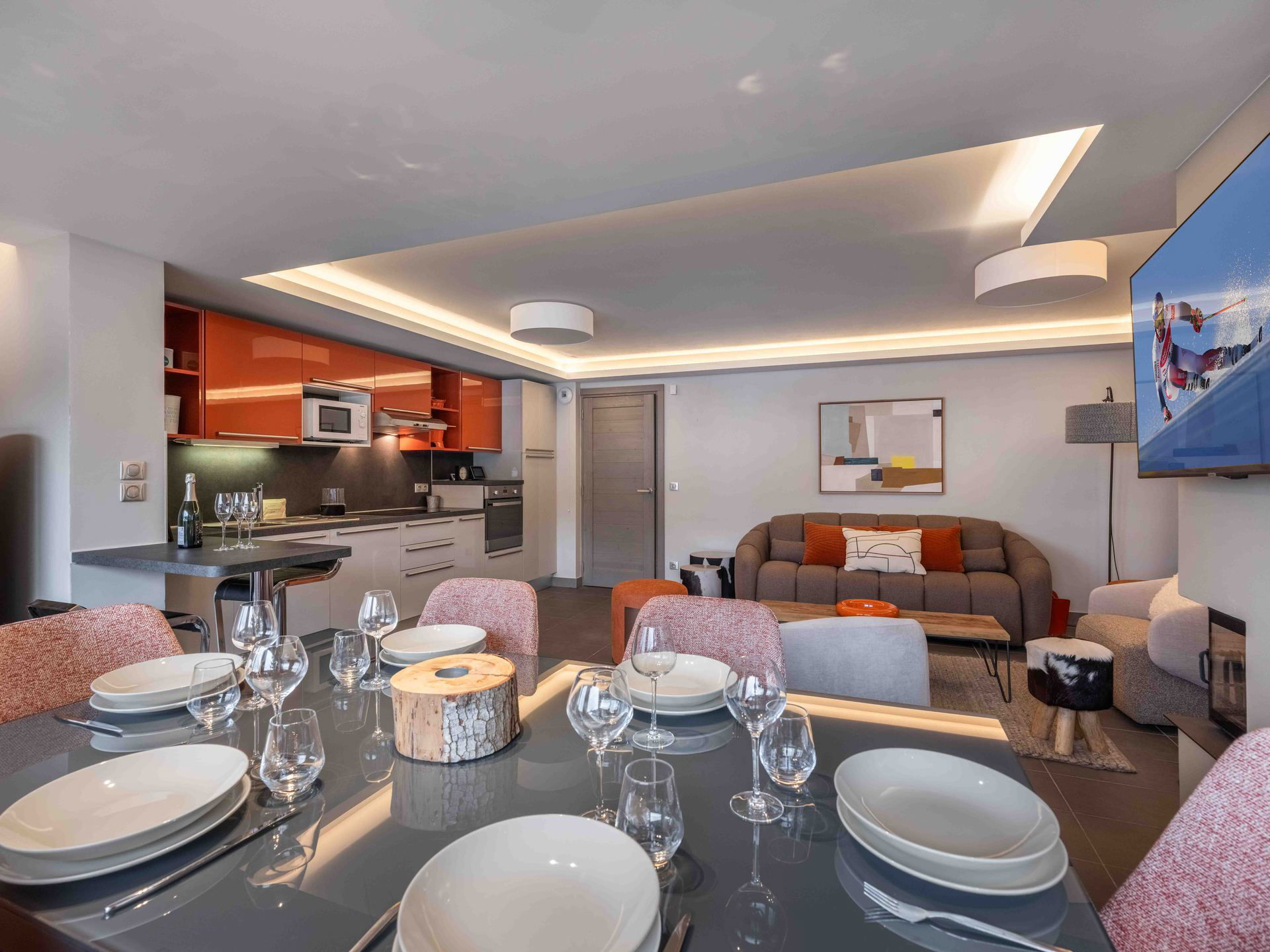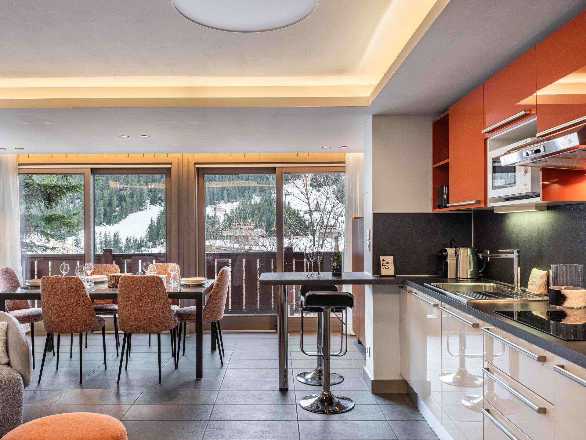 Ce bel appartement 3 pièces est situé dans le nouveau Chalet Les 3 Vaches (niveau -1) en plein centre de Moriond et à proximité des remontées mécaniques.