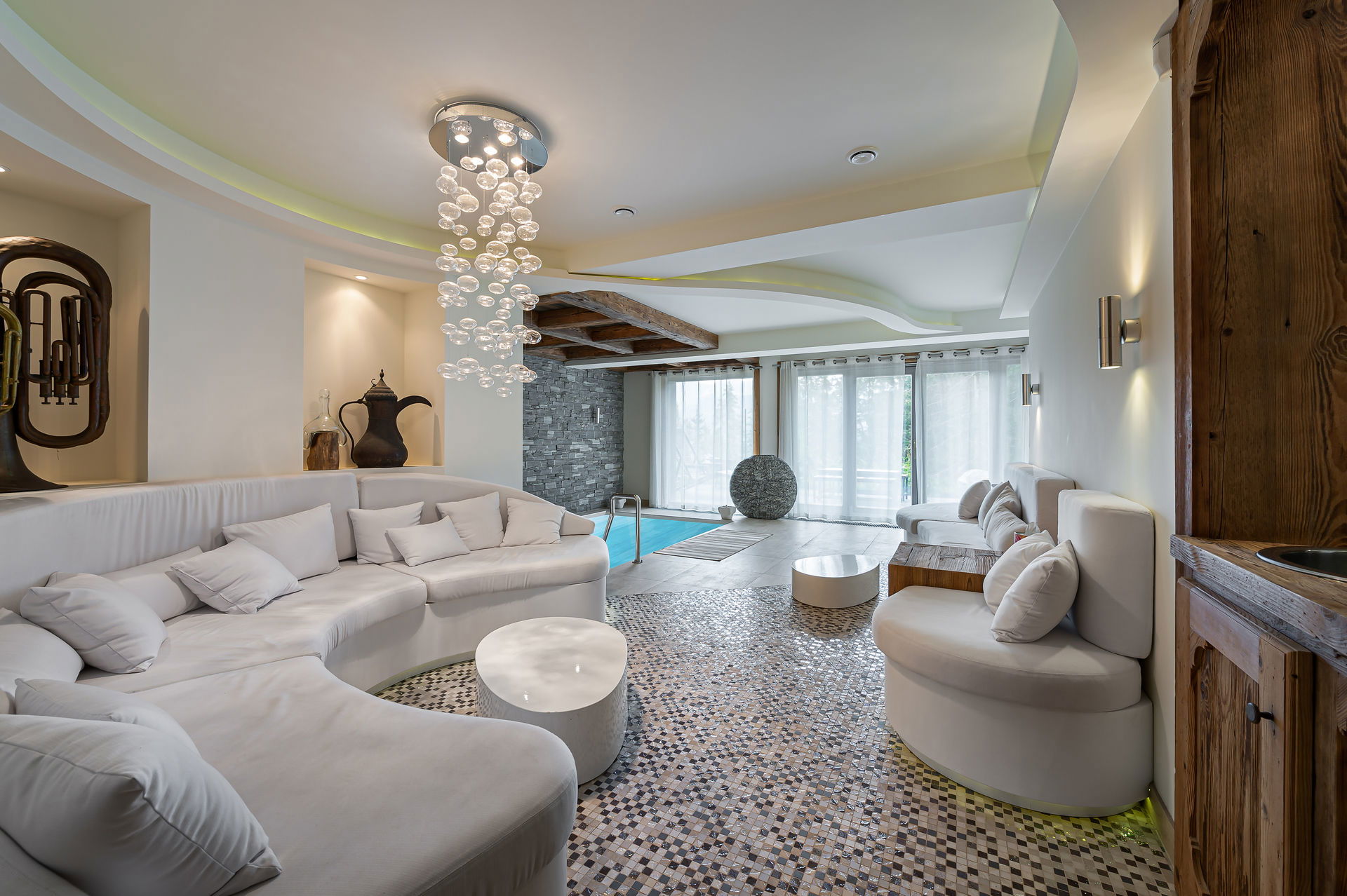 Sauna intérieur, jacuzzi intérieur et extérieur.
